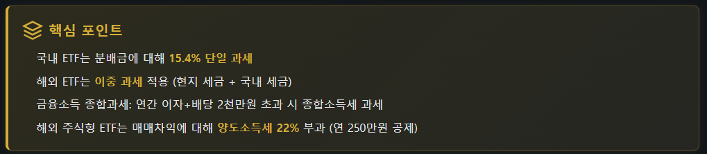 👉 ETF 분배금 과세 기준을 기준으로 포트폴리오를 다시 점검하는 것이 좋다.