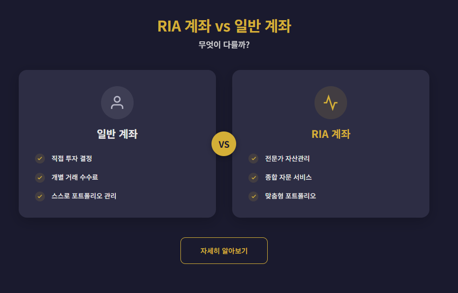 반면 RIA 계좌는 전문가의 판단이 개입되기 때문에 시간과 감정 소모를 줄일 수 있는 구조입니다.