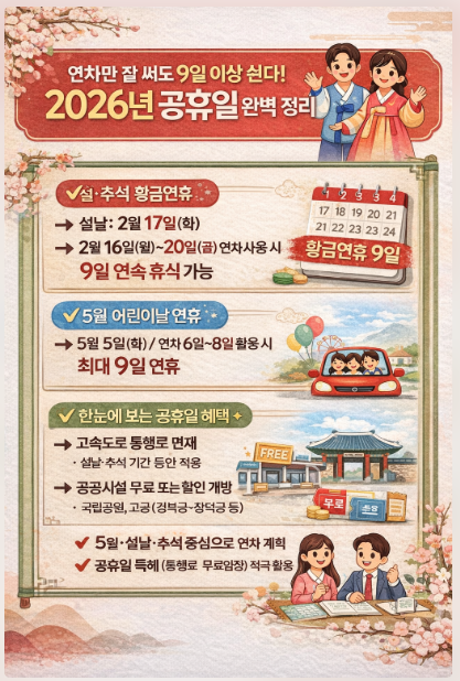 | 2026 설연휴 총정리|신정·구정 날짜부터 연차 활용법, 통행료 무료 정보까지 (1) | 2025.12.31 |