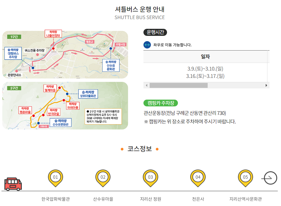 ㅇ구례 산수유 축제 주차 및 셔틀버스 운행 정보